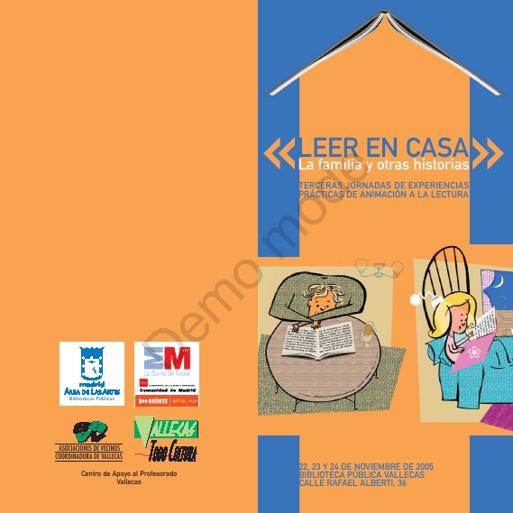 Desde el compromiso con la cultura, con los libros y sus autores, las Asociaciones de Vecinos de Vallecas, Vallecas Todo Cultura, La Dirección General de Archivos, Museos y Bibliotecas, las Bibliotecas Públicas de la Comunidad de Madrid,el Centro de Apoyo al Profesorado de Vallecas y las Bibliotecas Municipales de Vallecas nos hemos puesto, una vez más, de acuerdo para reflexionar en público sobre este apasionante reto, para acercar el libro y favorecer la lectura entreniños, jóvenes y adultos.